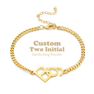 Bracelet Personnalisé Avec Initiales Entrelacées - Bracelet À Maillons Gourmette À Deux Initiales - Bracelet De Couple Avec Lettres Entrelacées - Cadeau Pour Elle33% Rabais