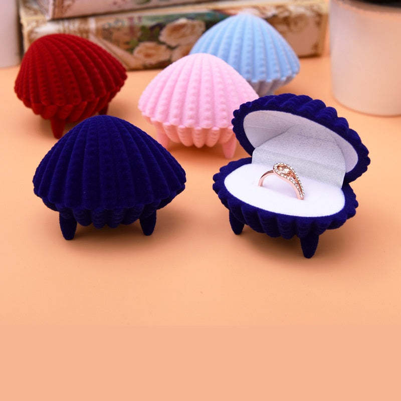 Bague boucles d'oreilles boîte en forme de coquille dessin animé mignon bague boîte à bijoux cadeau pour elle