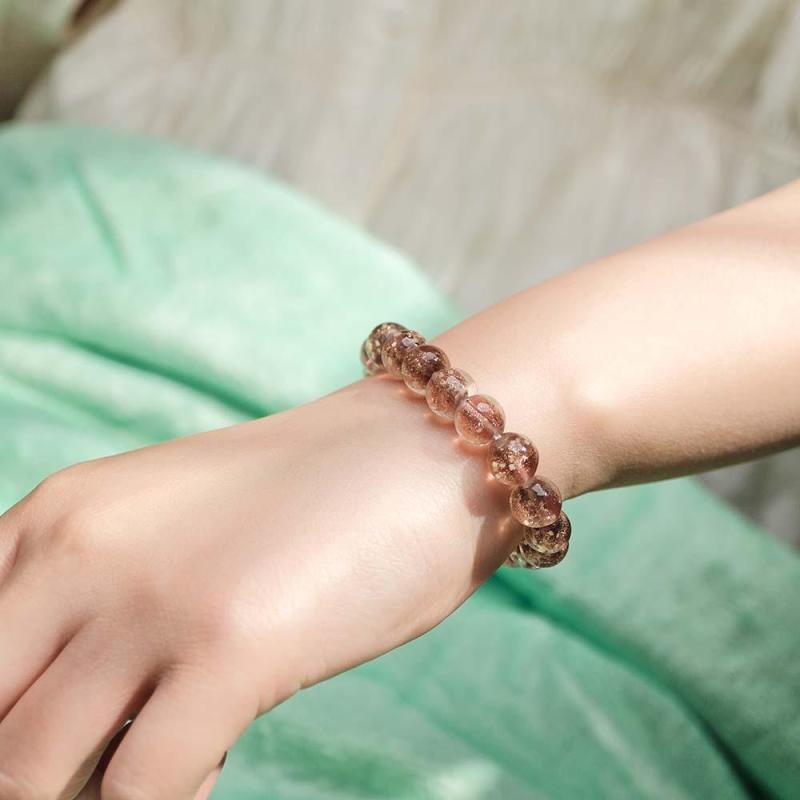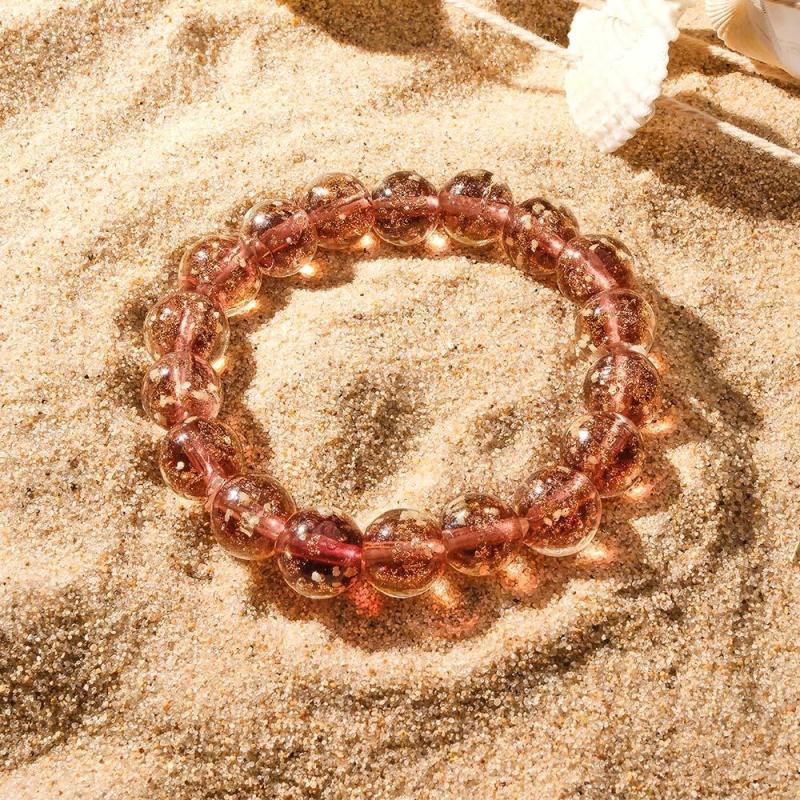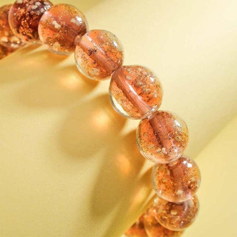 Bracelet De Perles Extensibles En Verre Luciole Marron, Brillant Dans Le Noir, Bracelet Lumineux