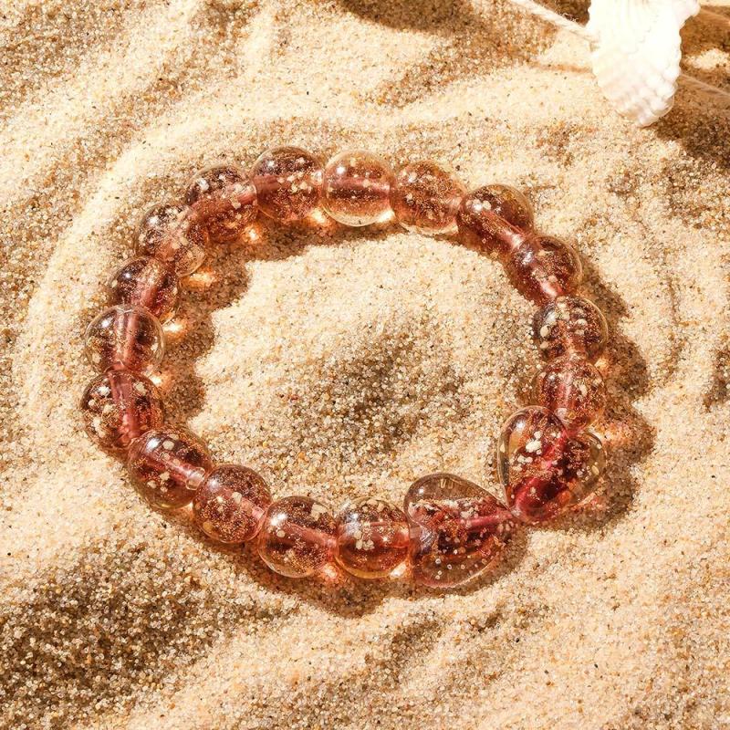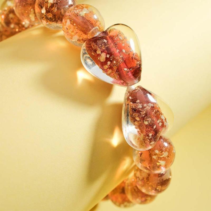 Bracelet De Perles Extensibles En Verre Luciole Marron Cœur À Cœur Qui Brille Dans Le Noir Bracelet Lumineux