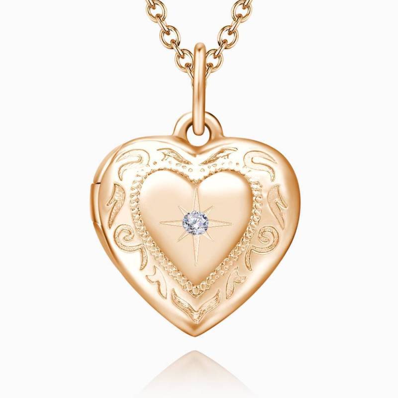 Cadeau de Fête Des Mères Collier Photo Médaillon Coeur Impression En Relief Plaqué Or Rose