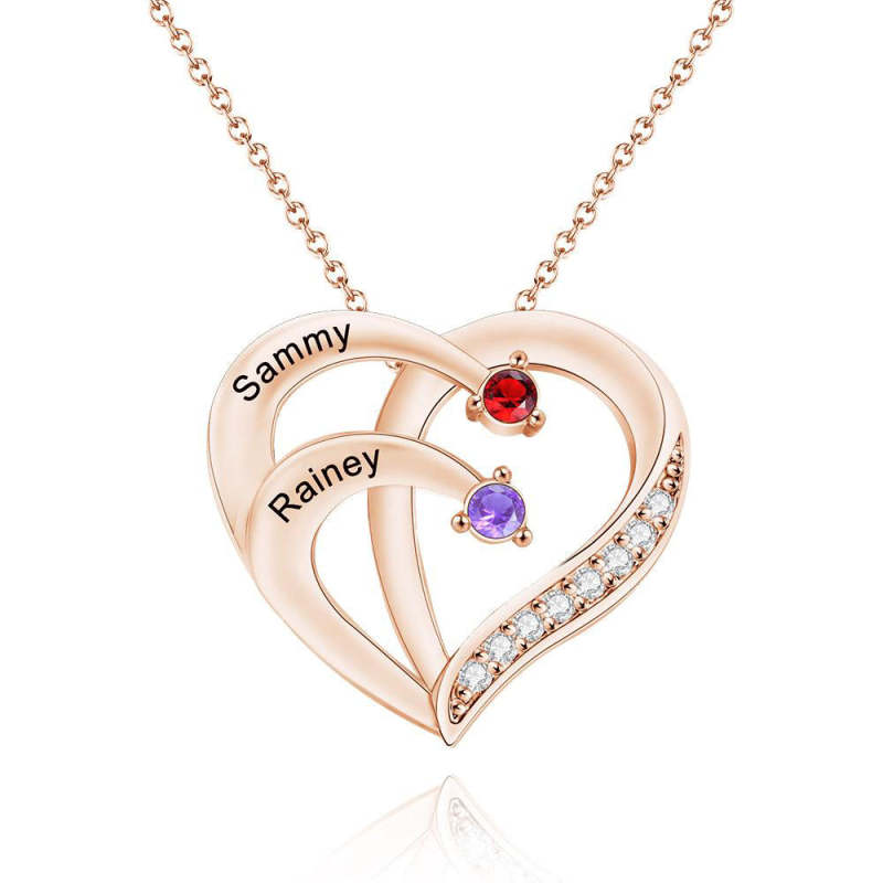 Collier En Forme De Coeur Avec Pierre De Naissance Gravée Collier Avec Nom Personnalisé Cadeau Pour Maman