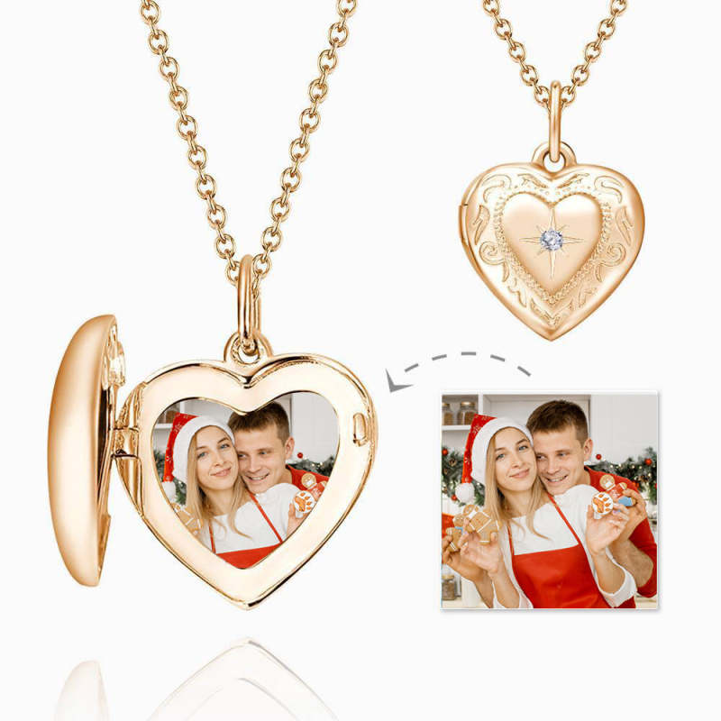 Collier Photo Médaillon Coeur Impression En Relief Plaqué Or Rose Cadeau de Noël