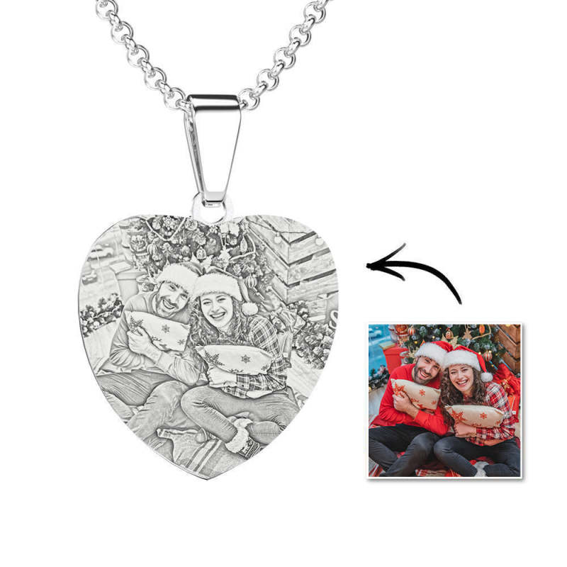 Collier Tag Gravé Photo Coeur Avec Gravure En Acier Inoxydable Cadeau de Noël