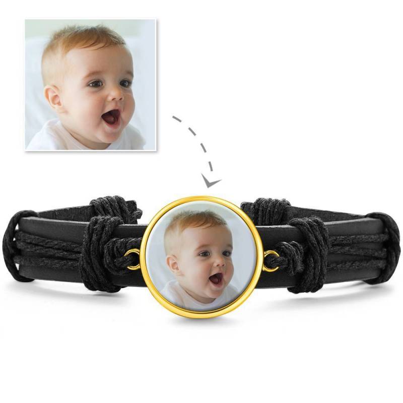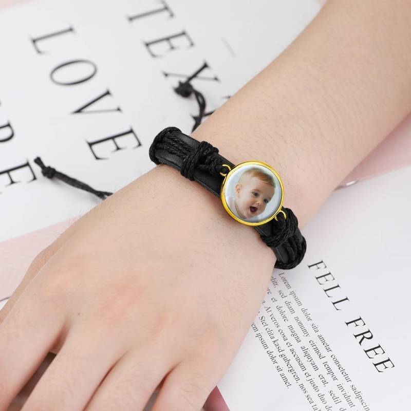 Bracelet en Photo Cadeau Souvenir en Cuir Noir Rond