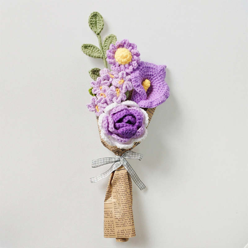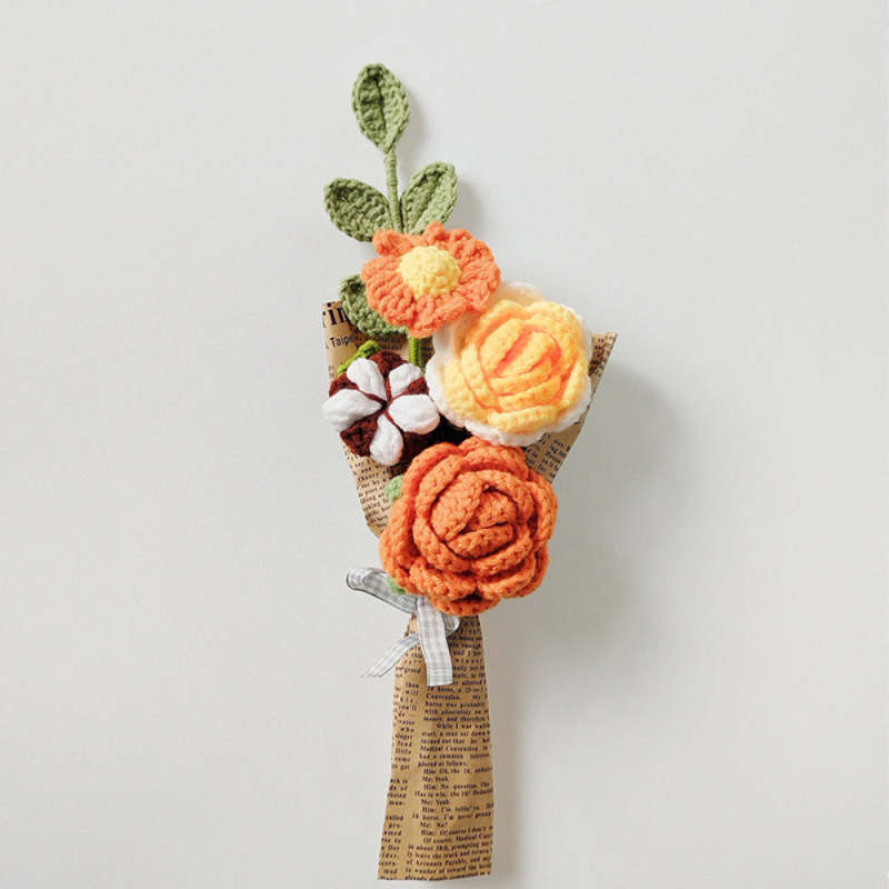 Bouquet De Fleurs Au Crochet Cadeau De Bouquet De Roses Tricotées À La Main Pour Elle