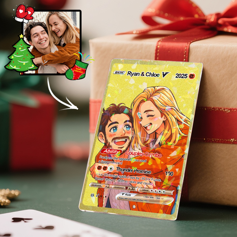 Carte Dorée Personnalisée Sur Le Thème Des Animés, Cadeau De Noël Romantique Pour Les Couples, Souvenir De Collection Unique.