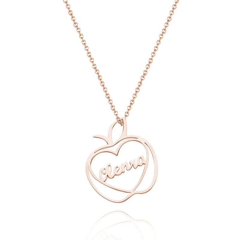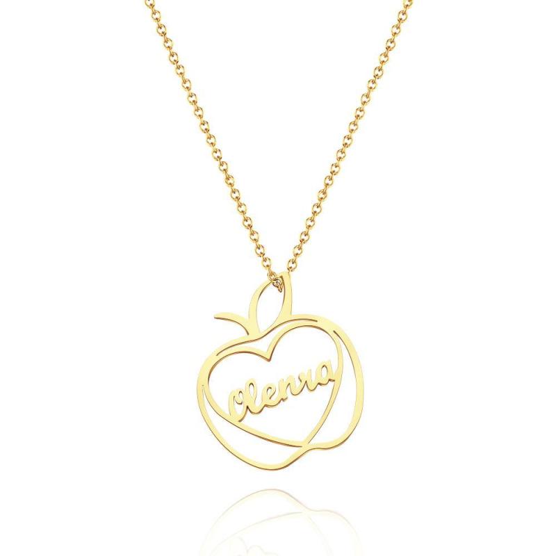 Collier Prénom Pomme Gravé Personnalisé Bijoux Estampés Avec Breloque Pomme Pour Elle
