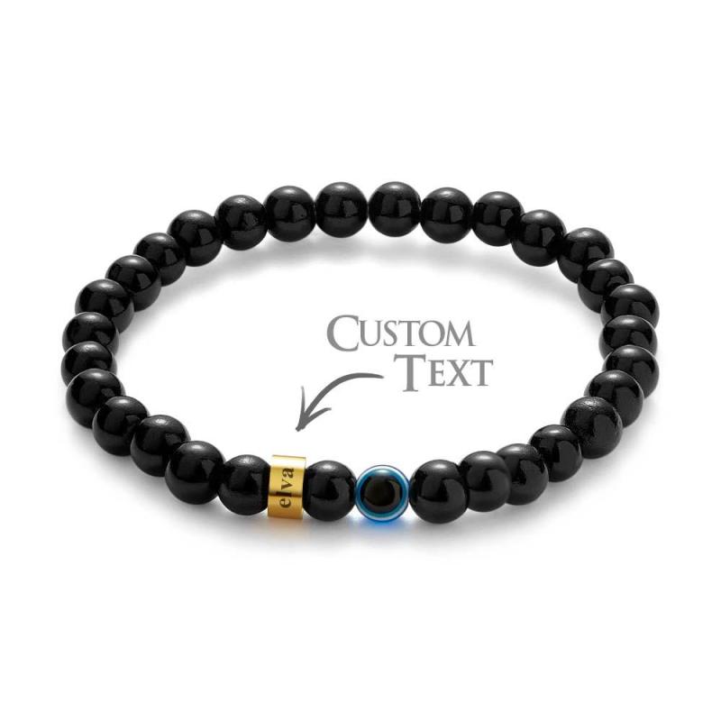 Bracelet De Perles Gravé Personnalisé, Bracelet Amulette Pour Hommes, Mauvais Œil