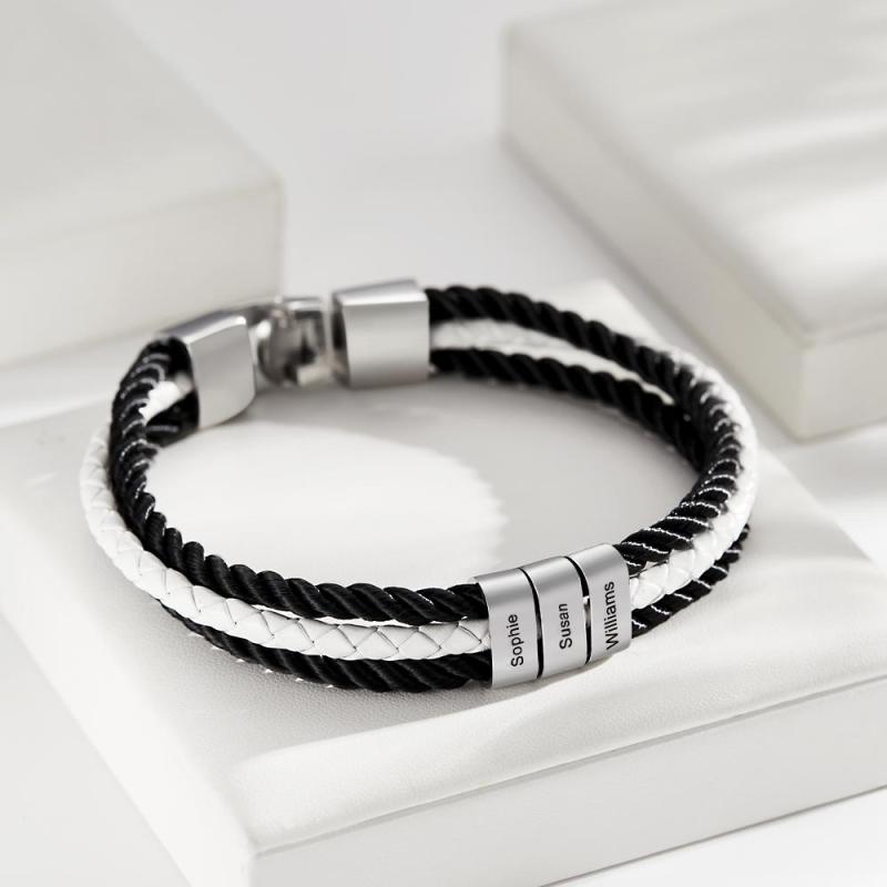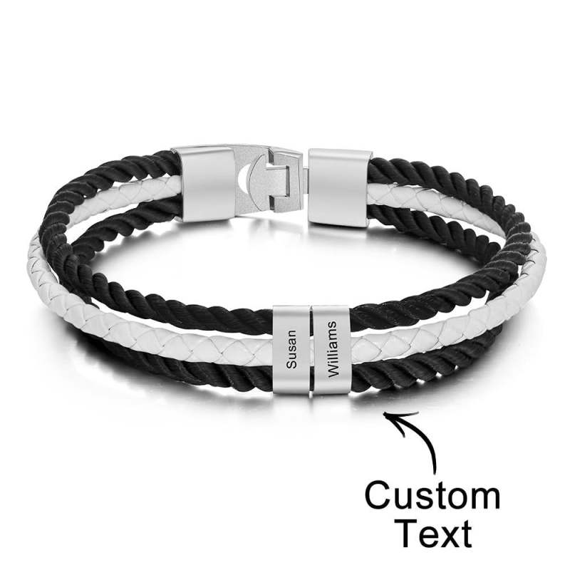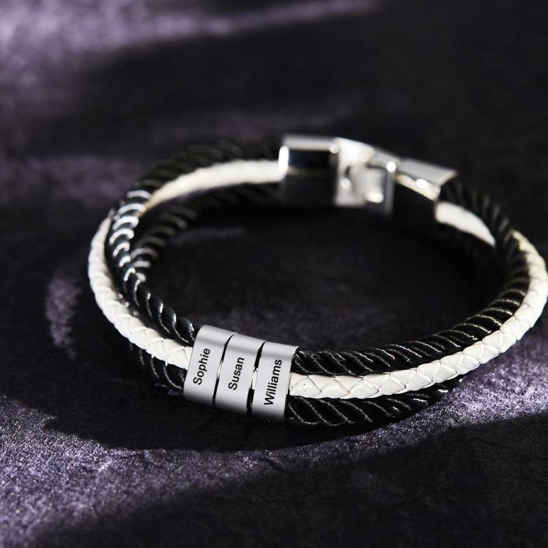 Bracelet Gravé Personnalisé Cadeaux En Cuir Tressé Pour Hommes