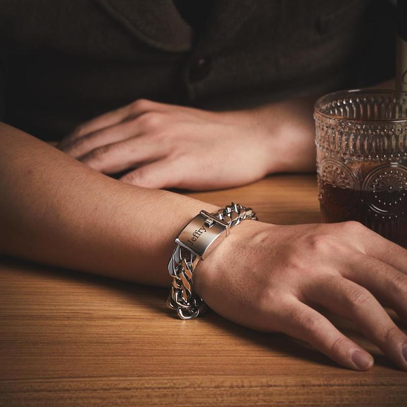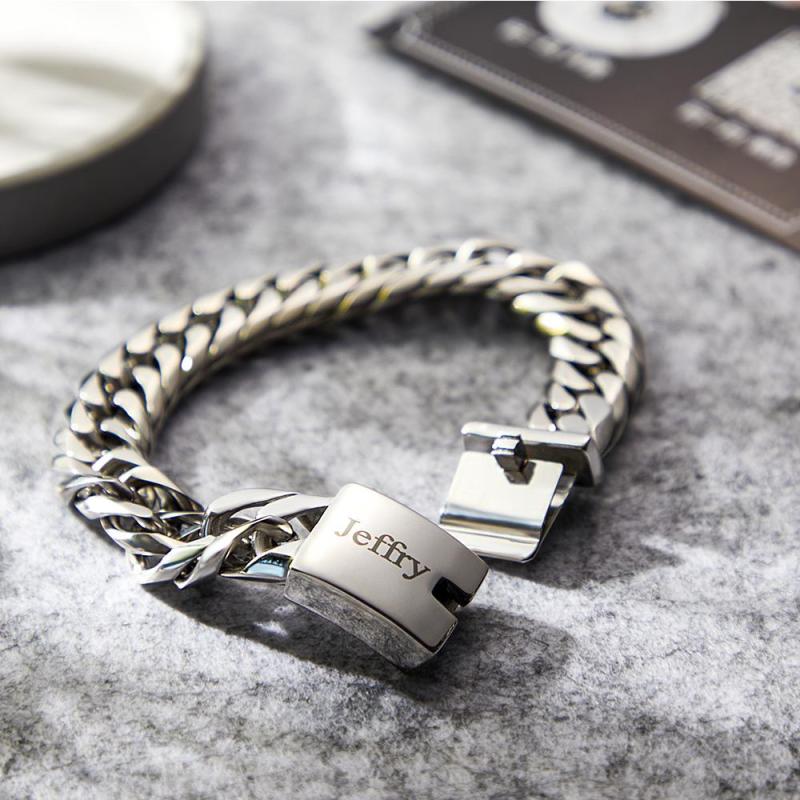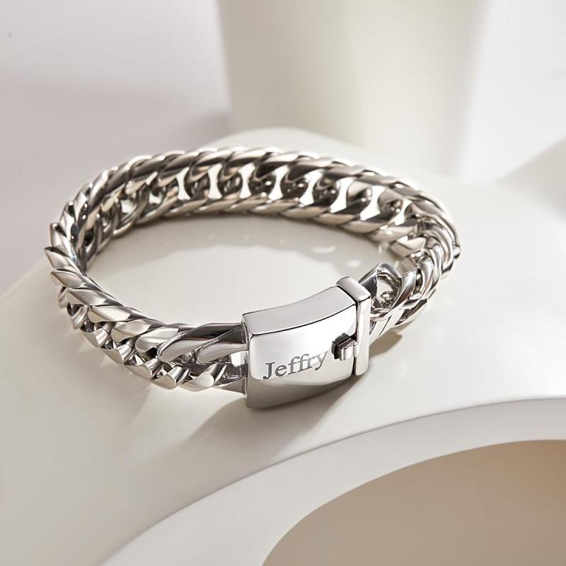Bracelet Gravé Personnalisé Bracelet Cubain En Acier Inoxydable Cadeau Pour Homme