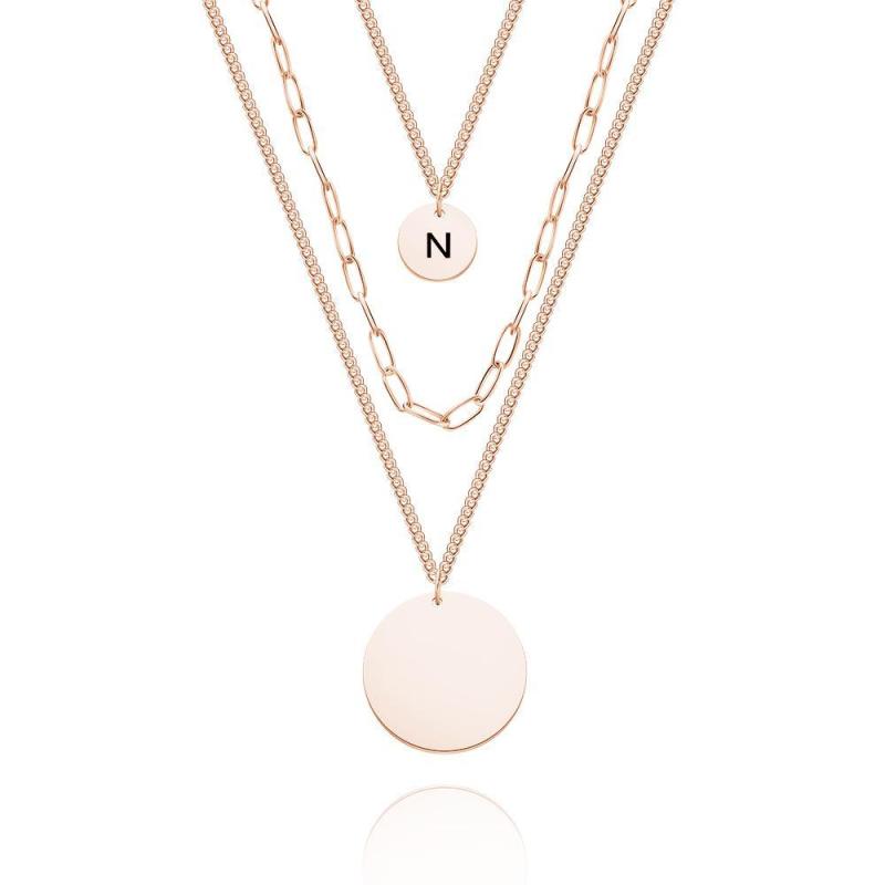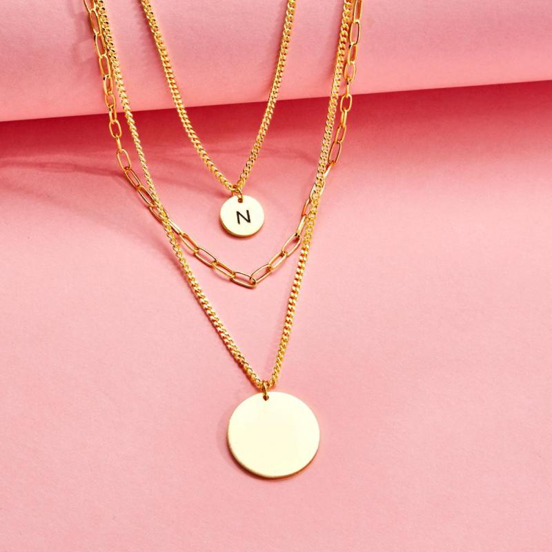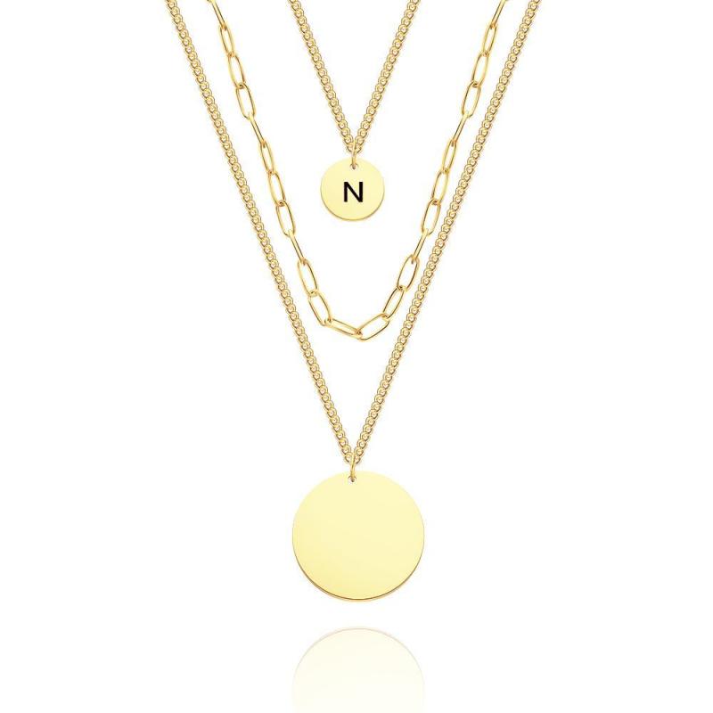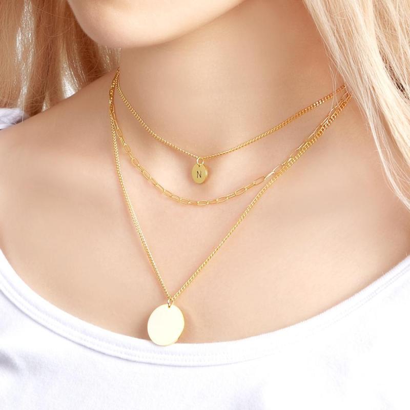 Collier De Disque Gravé Personnalisé Collier De Pièce De Monnaie À Maillons De Chaîne À Triple Brin