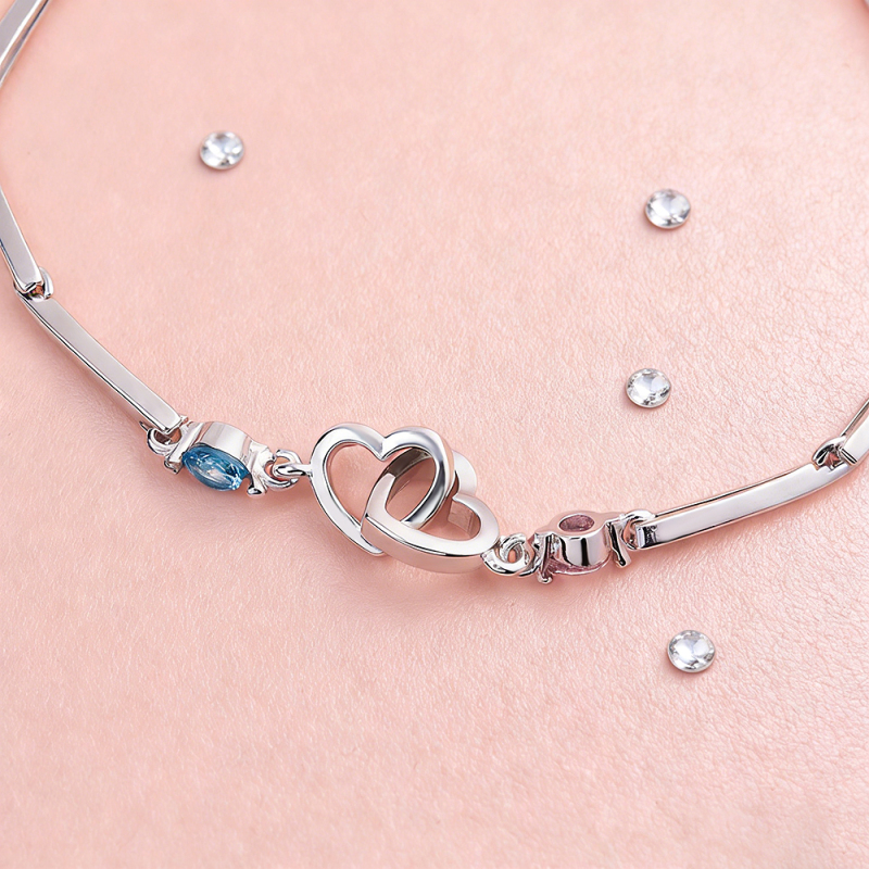Bracelet Double Cœur Gravé Sur Mesure Avec Deux Pierres De Naissance - Souvenir Personnalisé Pour Grand-mère Et Petit-enfant
