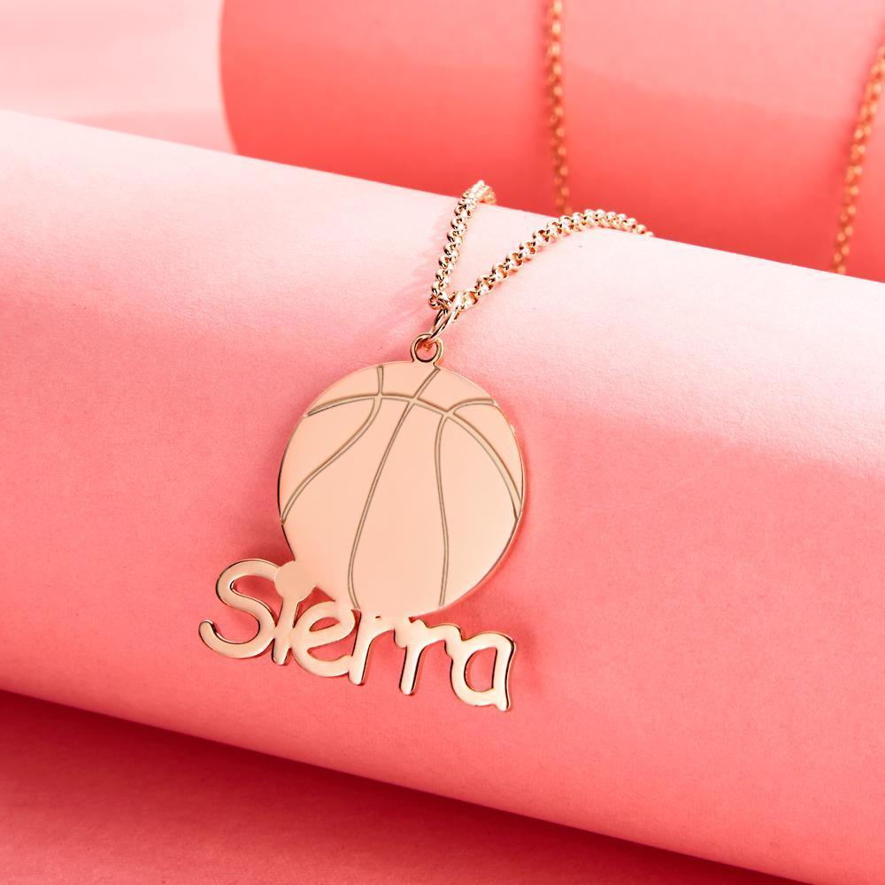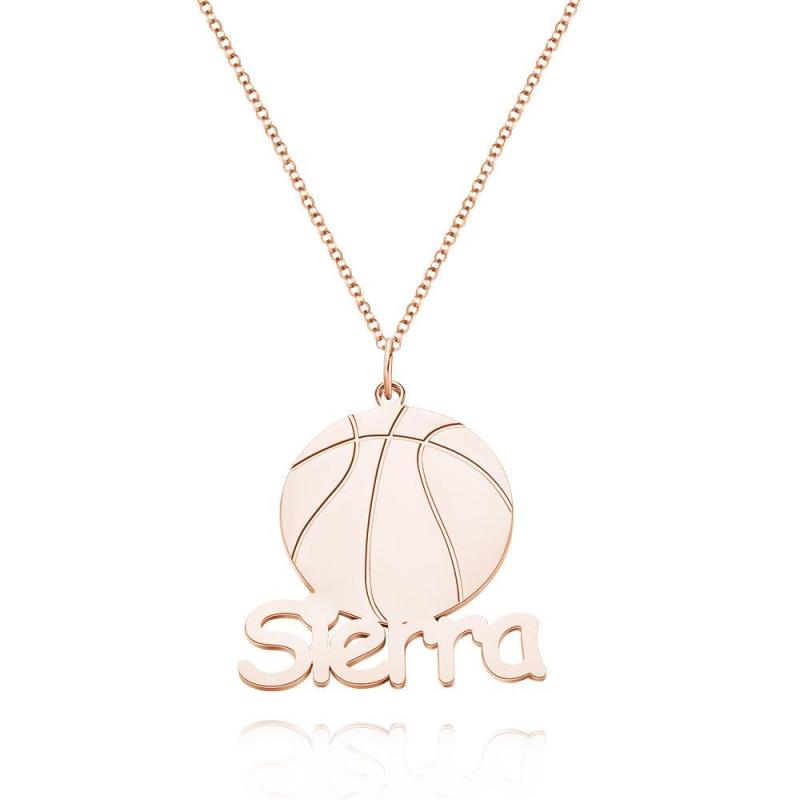 Collier Prénom Gravé Sur Mesure Pendentif Joueur De Basket-Ball Cadeau De Sport Pour Elle