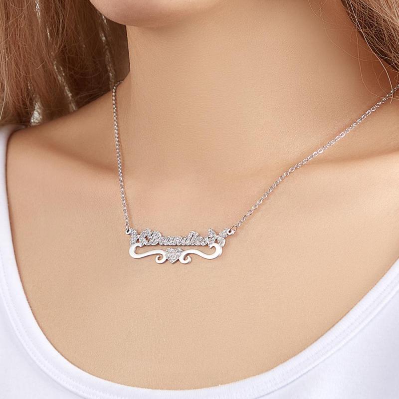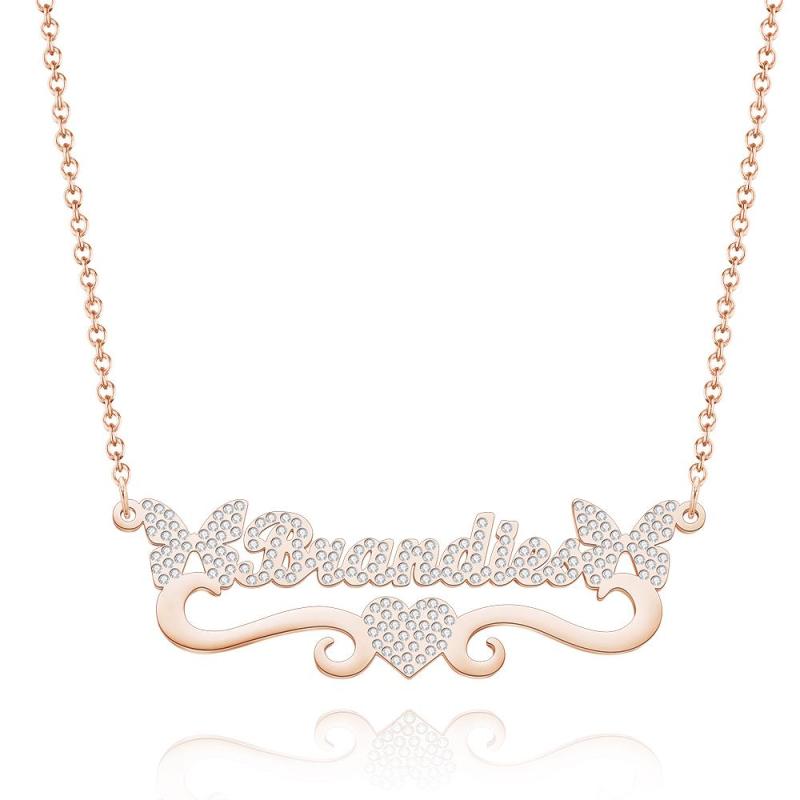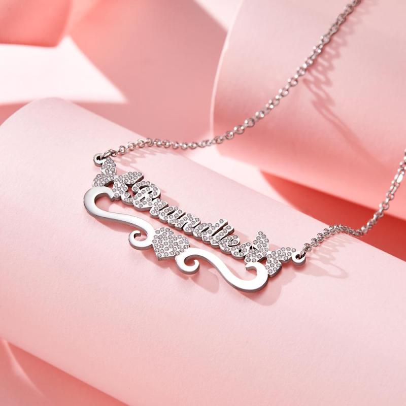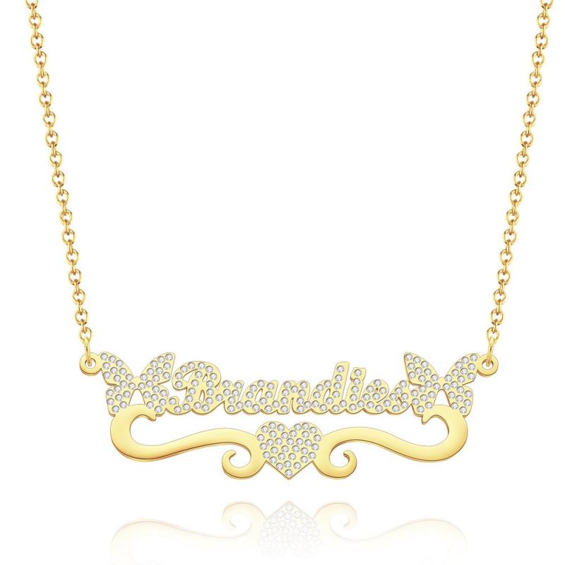Collier Prénom Gravé Personnalisé Coeur Papillon Pétillant Cadeaux Diamant