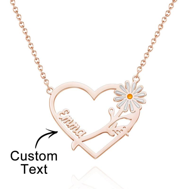 Collier Gravé Personnalisé Marguerite En Forme De Coeur Nom Collier Cadeau Pour Elle