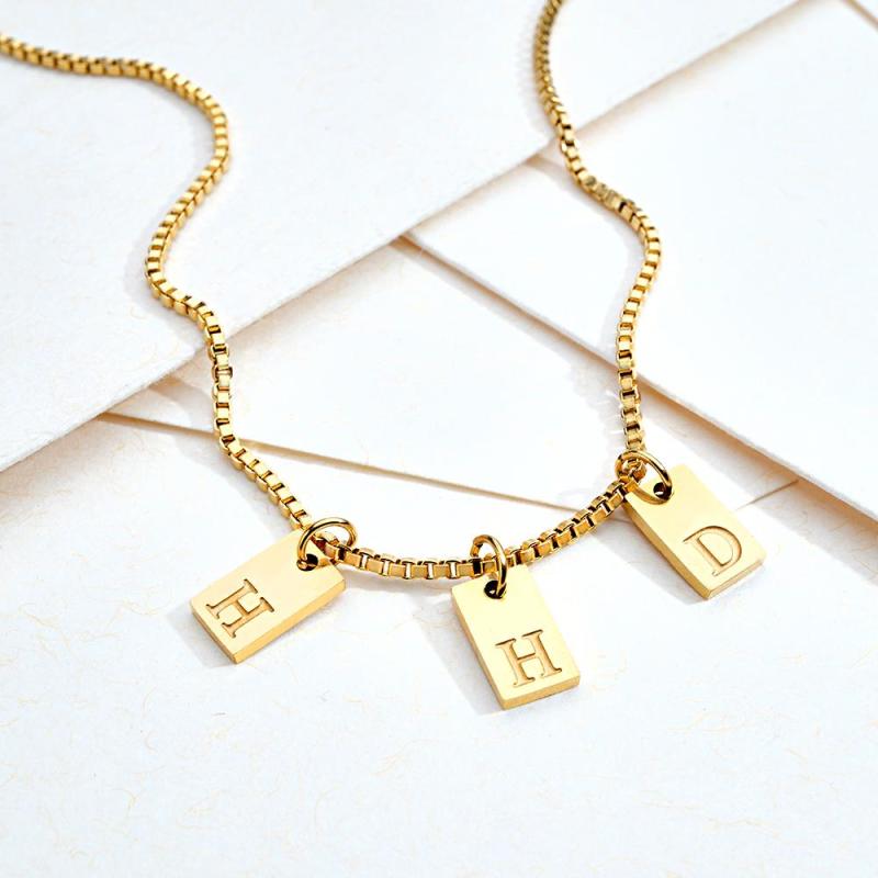 Collier Gravé Personnalisé, Cadeaux À Breloques Avec Lettres Initiales À Barres Multiples