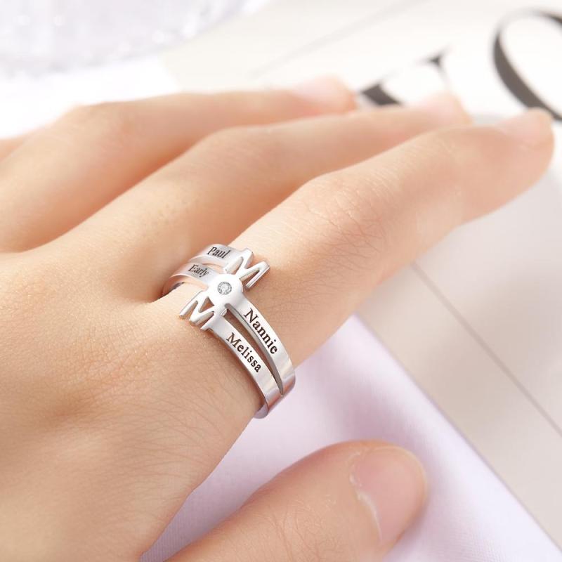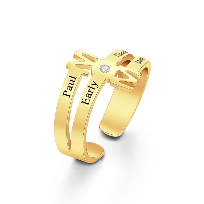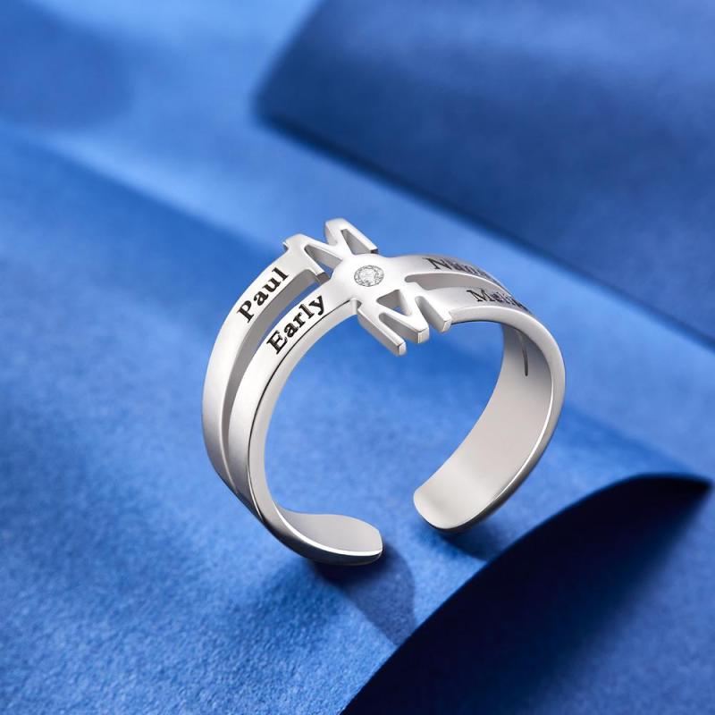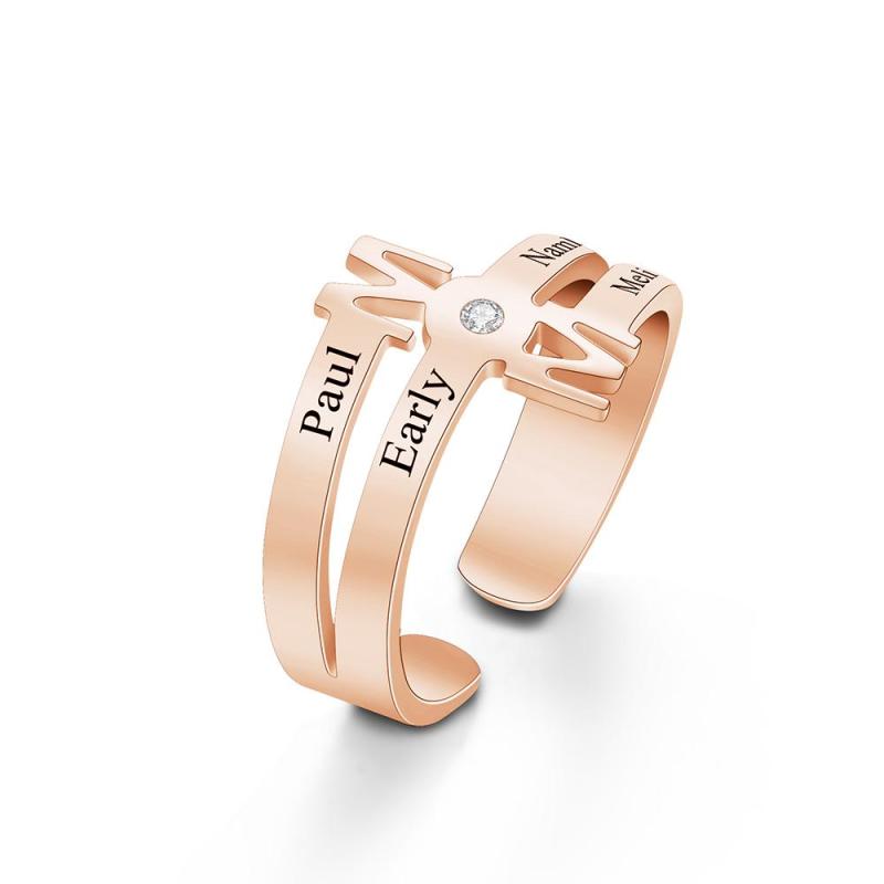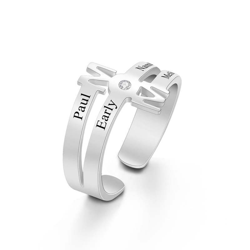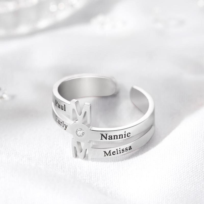 Bague Gravée Personnalisée Quatre Noms Bague Ouverte Cadeau Créatif pour Elle