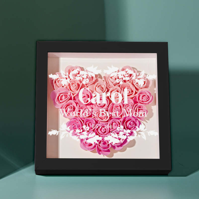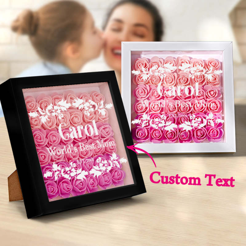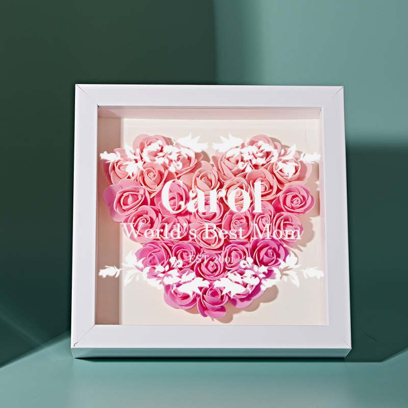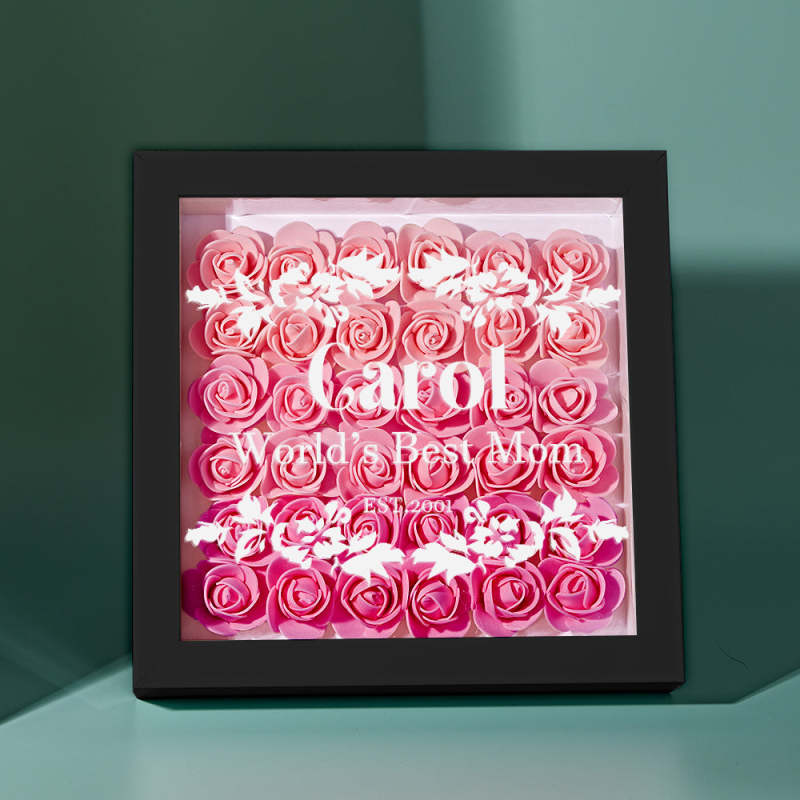 Boîte D'ombre De Fleur Personnalisée Cadeau De Cadre D'ombre De Fleur Rose Dégradé Personnalisé Pour Maman