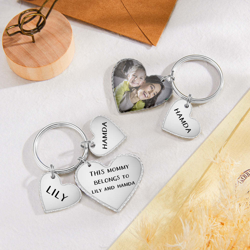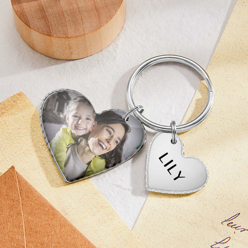 Porte-clés Texte Photo Coeur Personnalisé Avec Pendentif Coeur Cadeaux Fête des Mères