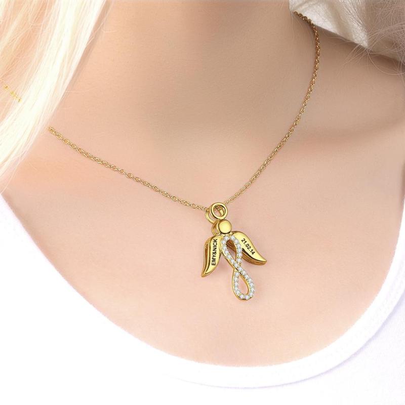 Collier Infinity Personnalisé Ailes Pendentif Nom Collier Or 14 Carats