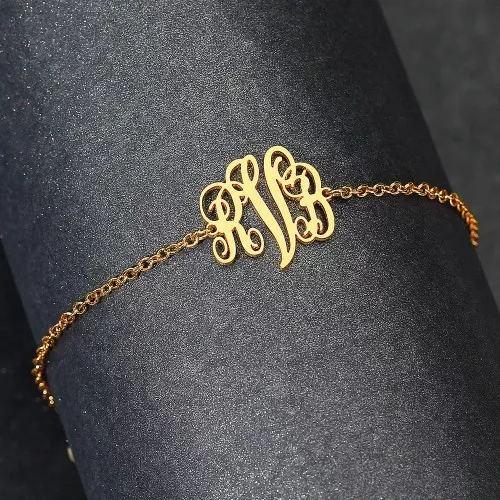 Bracelet De Cheville De Monogramme En Argent Plaqué Or 14k