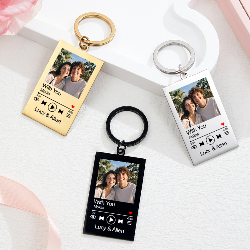 Porte-clés Photo Personnalisé Avec Lecteur De Musique Et Pochette De Chanson - Cadeau Romantique Pour Couple - Cadeau De Saint-valentin