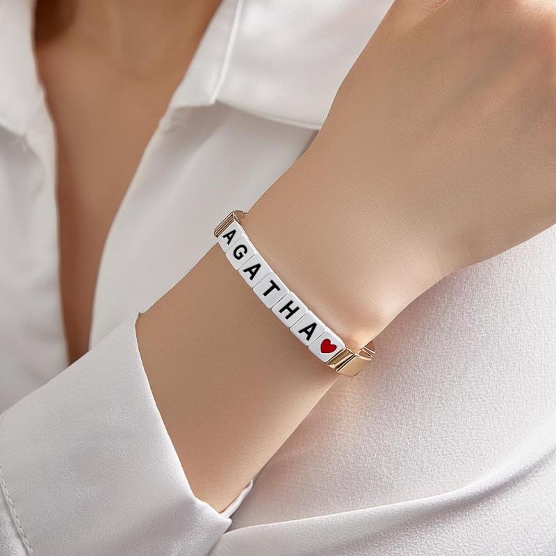 Bracelet De Perles En Émail Avec Nom Personnalisé, Couleur Or, Cadeau Pour Elle