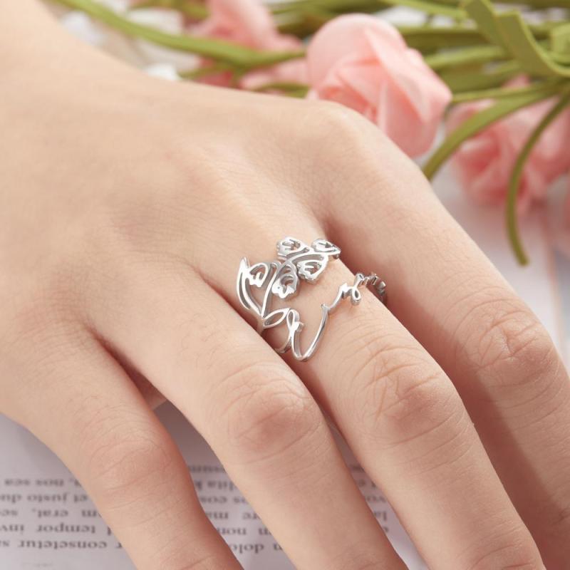 Nom Personnalisé Naissance Mois Fleur Anneau Septembre Matin Clory Dainty Floral Bijoux Cadeau D'anniversaire