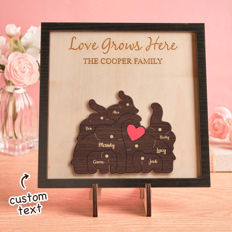 Puzzle Familial D'éléphants Avec Nom Personnalisé, Cadre En Bois, Décorations De Maison En Bois Personnalisées, Cadeau De Fête Des Mères