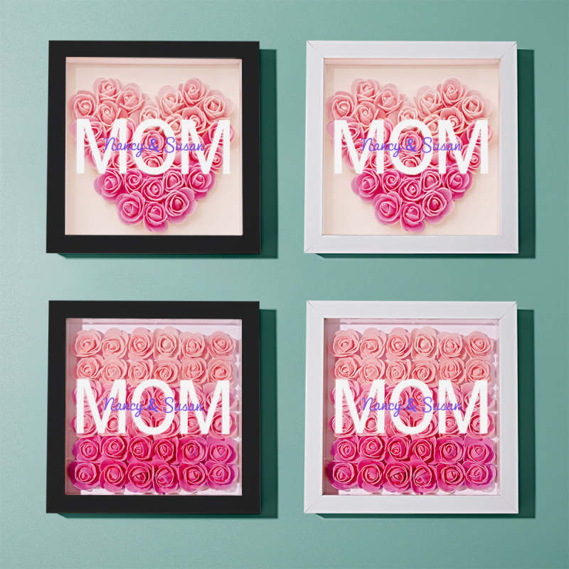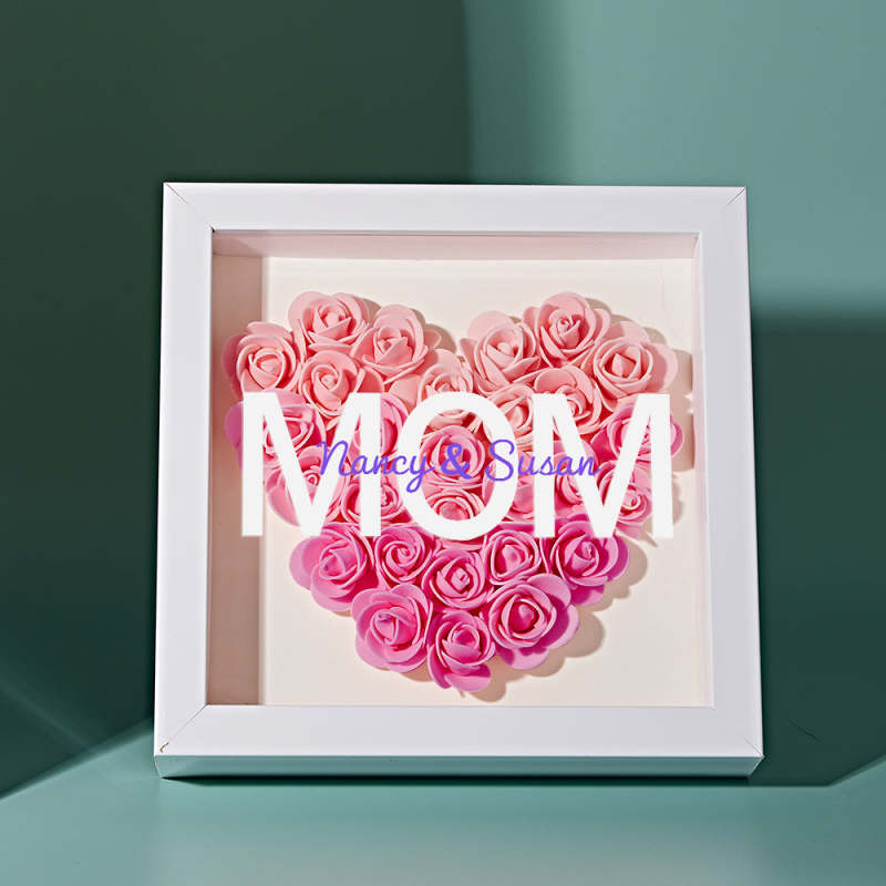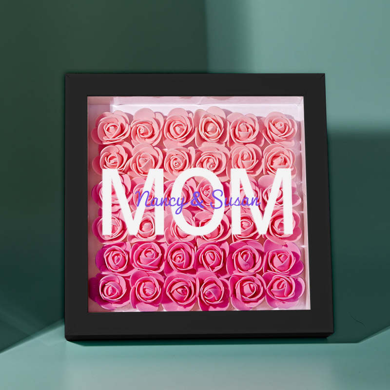 Nom Personnalisé Fleur Shadow Box Personnalisé Dégradé Rose Fleur Shadowbox Cadre Cadeau Pour Maman