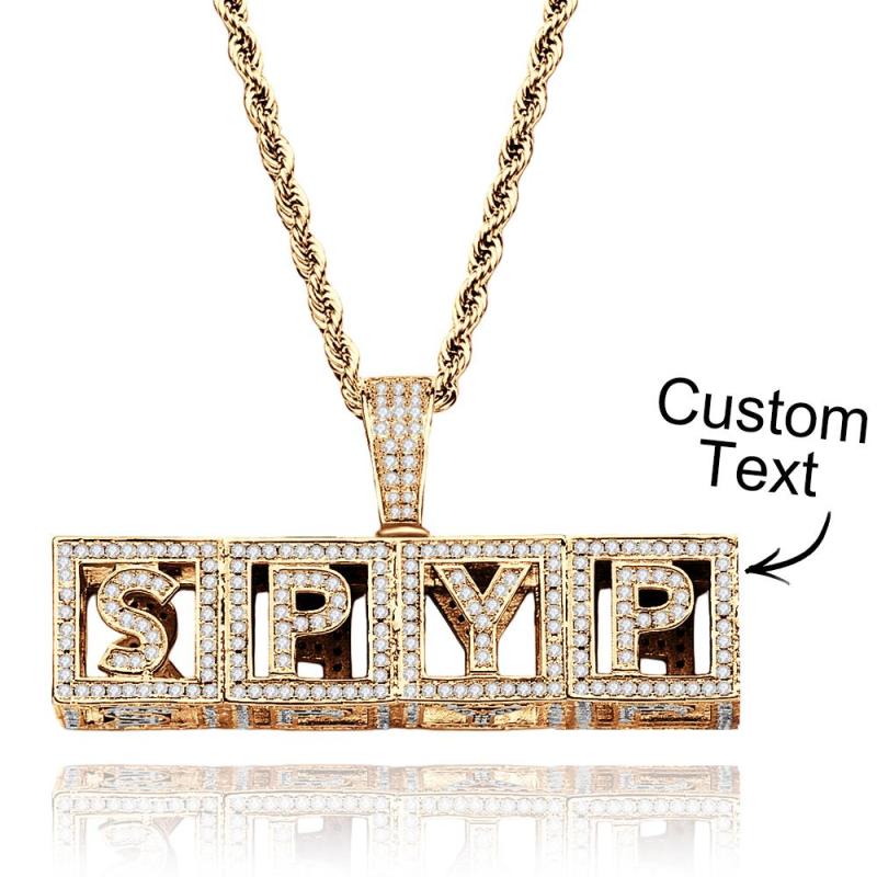 Collier Avec Nom Personnalisé, Bloc De Lettres, Chaîne Hip Hop Pour Hommes