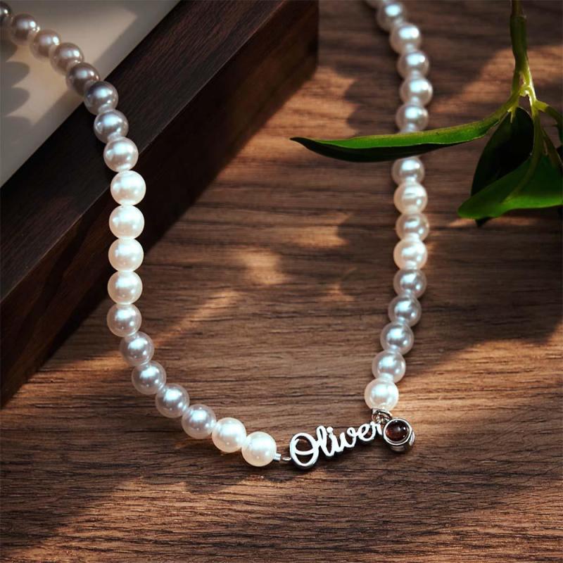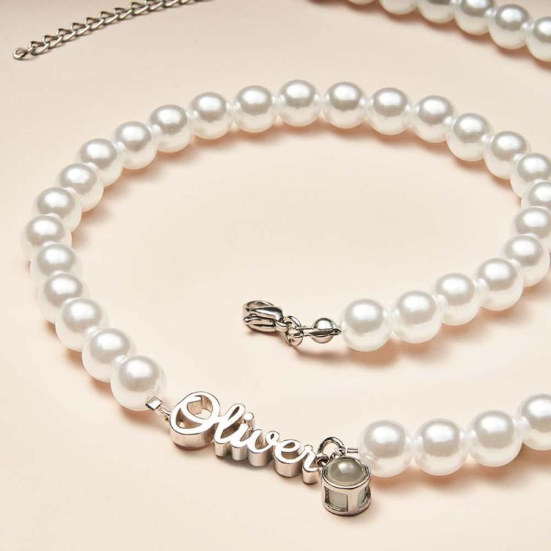 Collier Personnalisé Avec Projection De Nom, Chaîne De Perles Classique, Cadeau Pour Elle