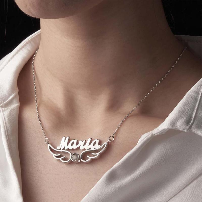 Collier De Projection De Nom Personnalisé, Cadeau De Style Ailes D'ange