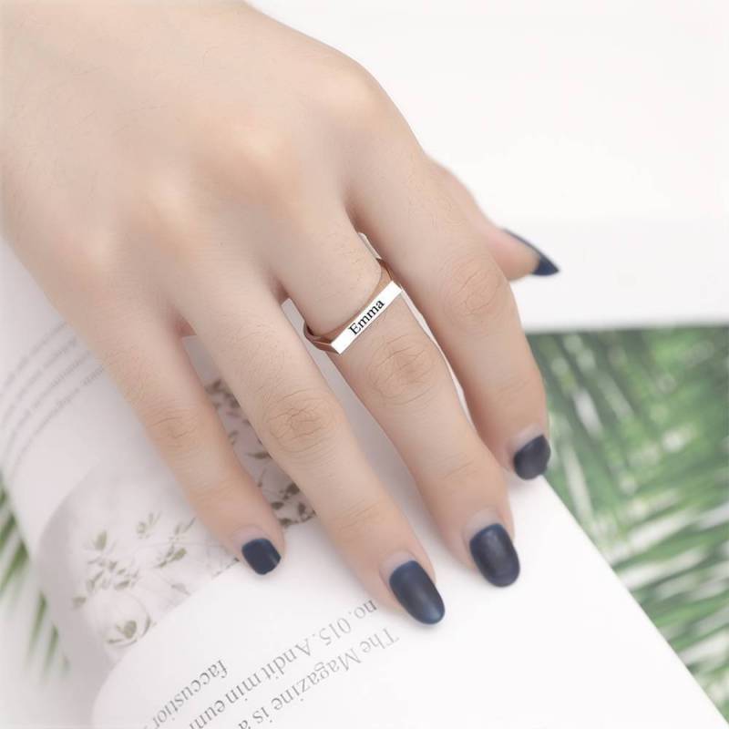 Anneau de nom personnalisé anneau de barre gravé plaqué platine