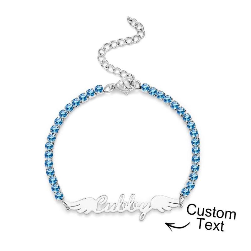 Bracelet De Tennis Avec Nom Personnalisé, Ailes D'ange Élégantes, Tous Les Diamants, Cadeau Pour Elle