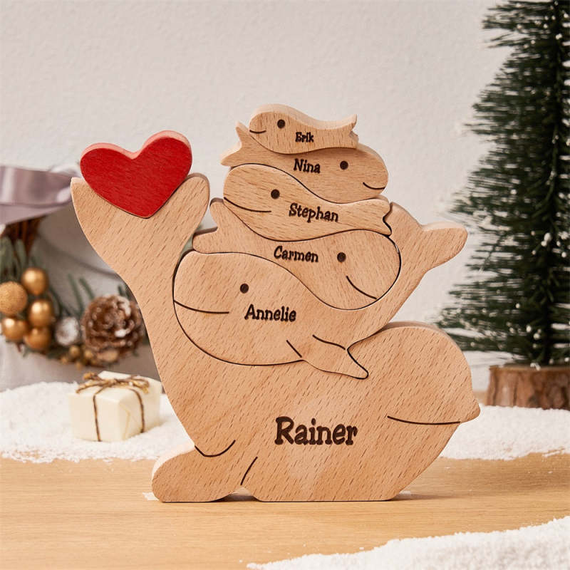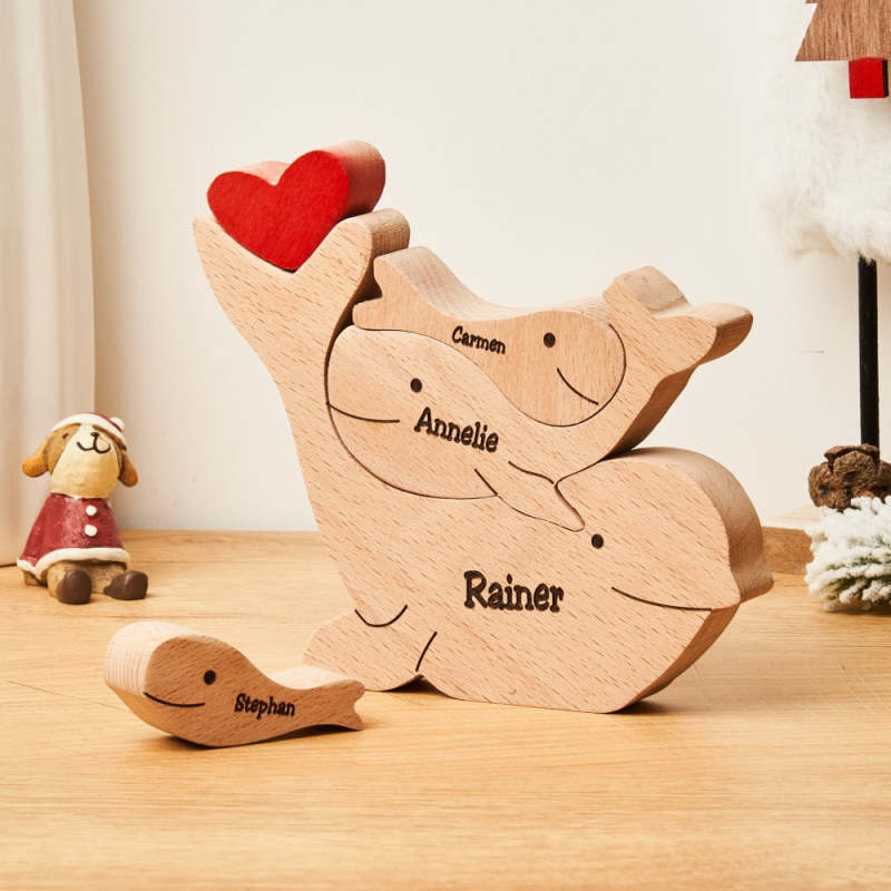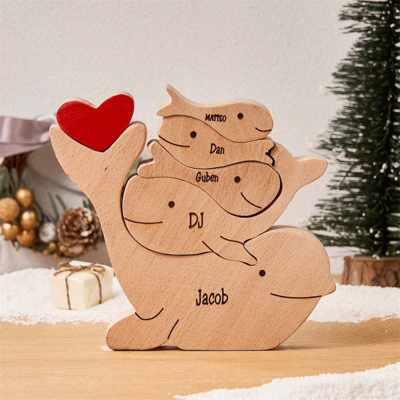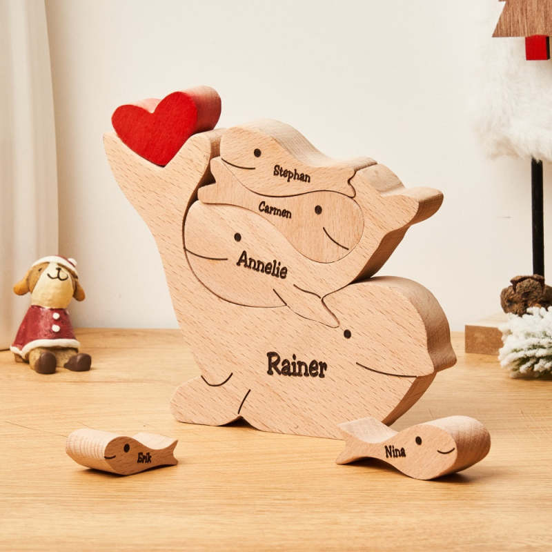 Puzzle Familial De Dauphins En Bois Avec Noms Personnalisés, Décoration De Maison, Cadeaux De Noël