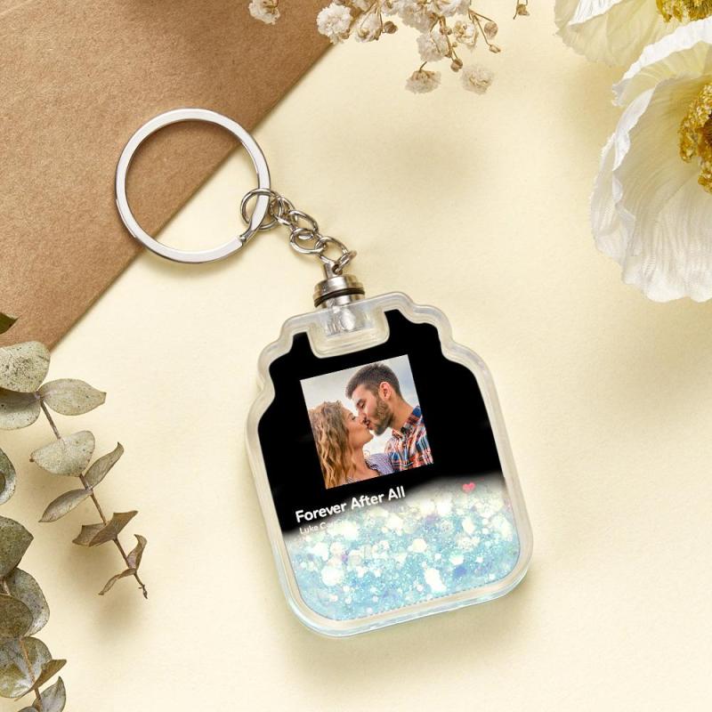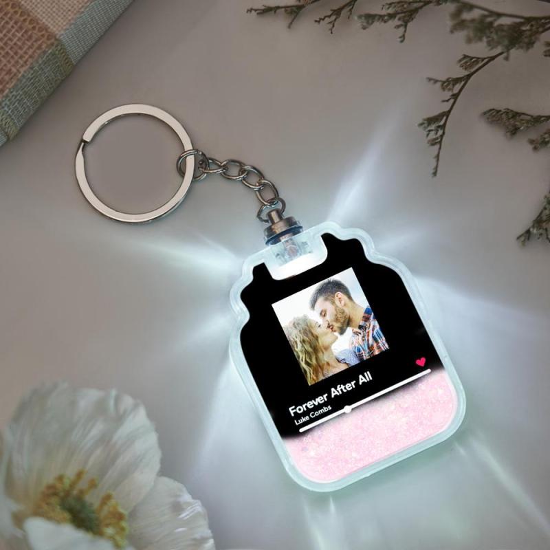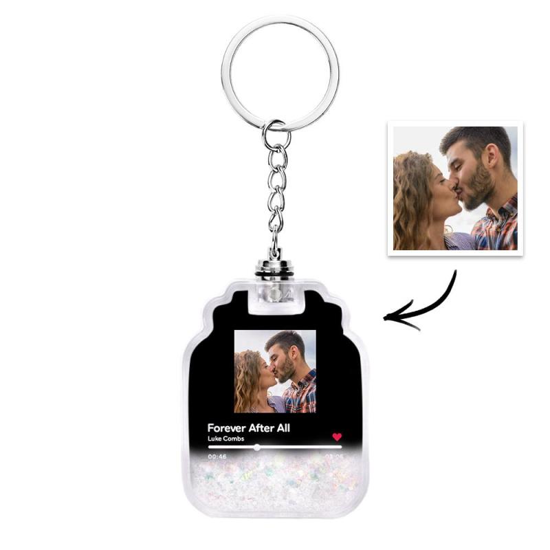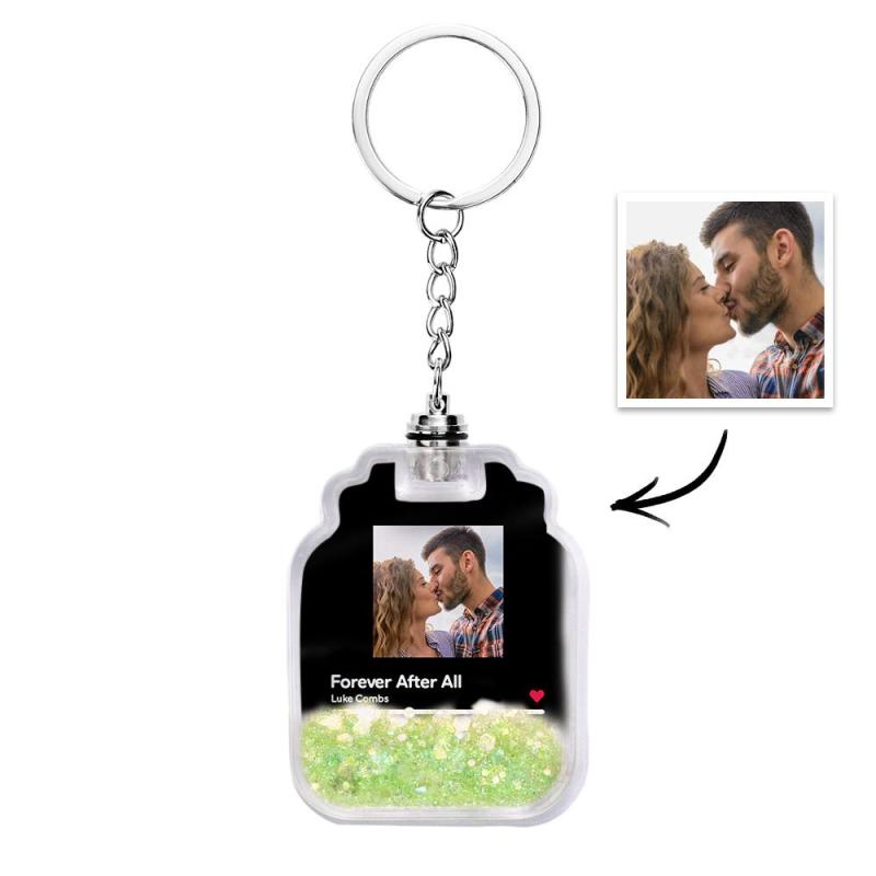Porte-clés En Forme De Bouteille De Dérive De Sables Mouvants Illuminé Par Code Spotify Scannable Par Photo Personnalisée