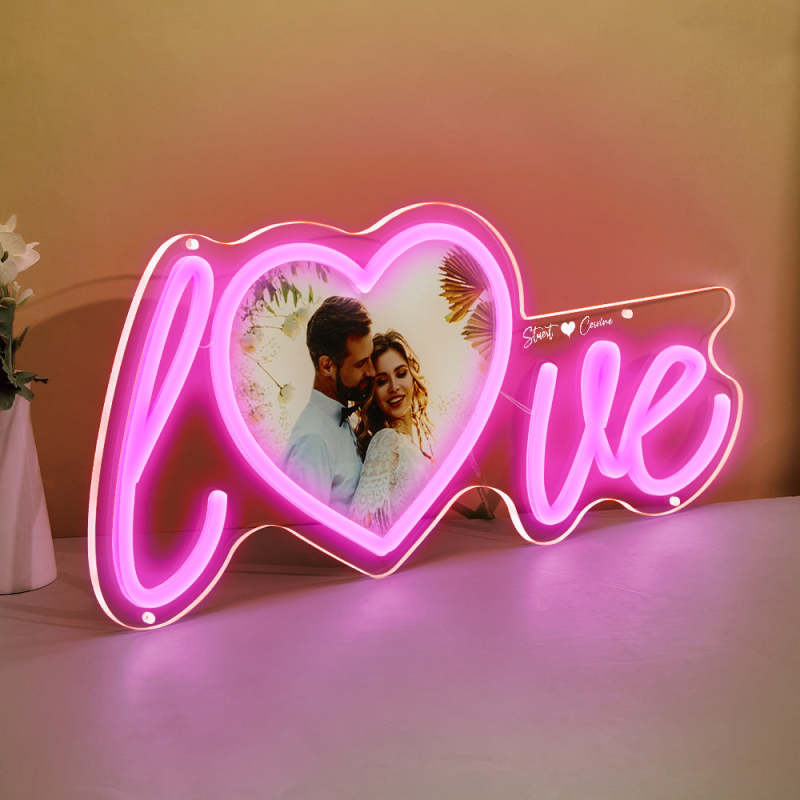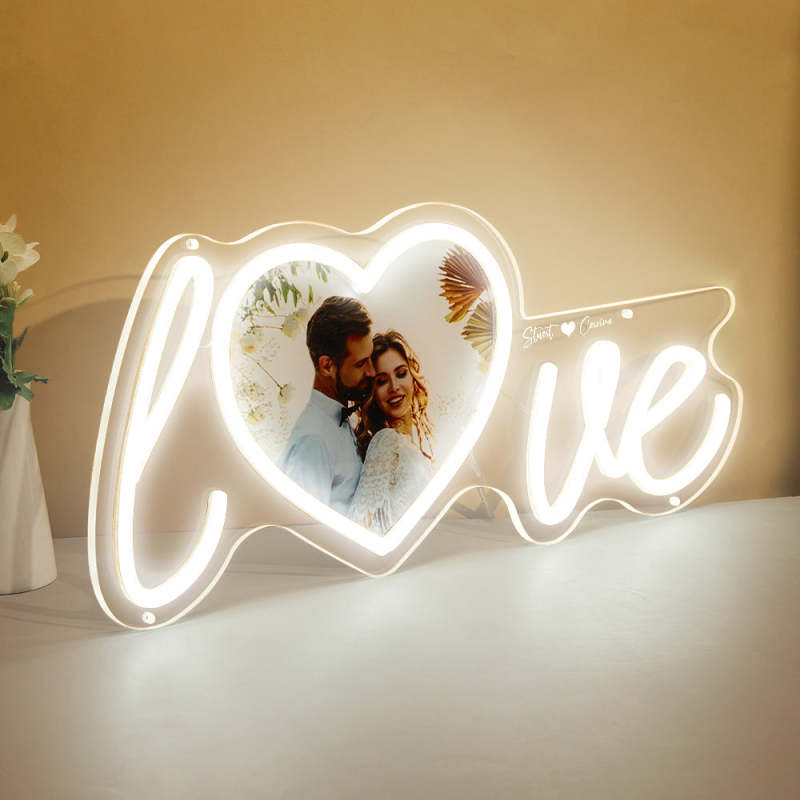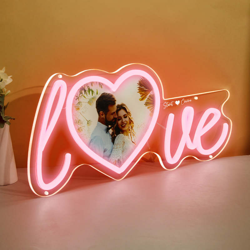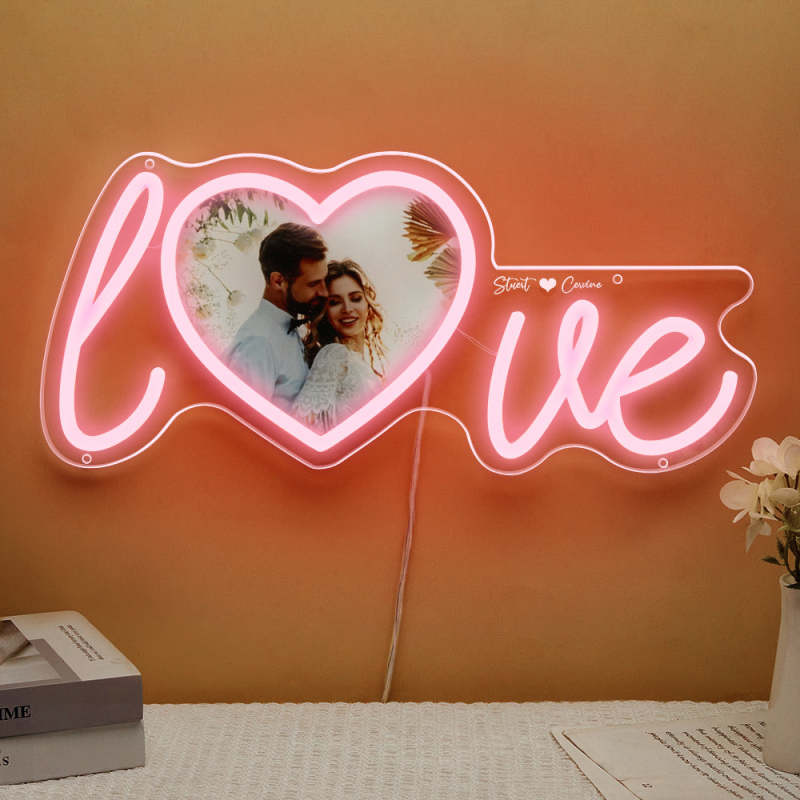 Lampe Néon Coeur D'amour Avec Photo Et Nom Personnalisés