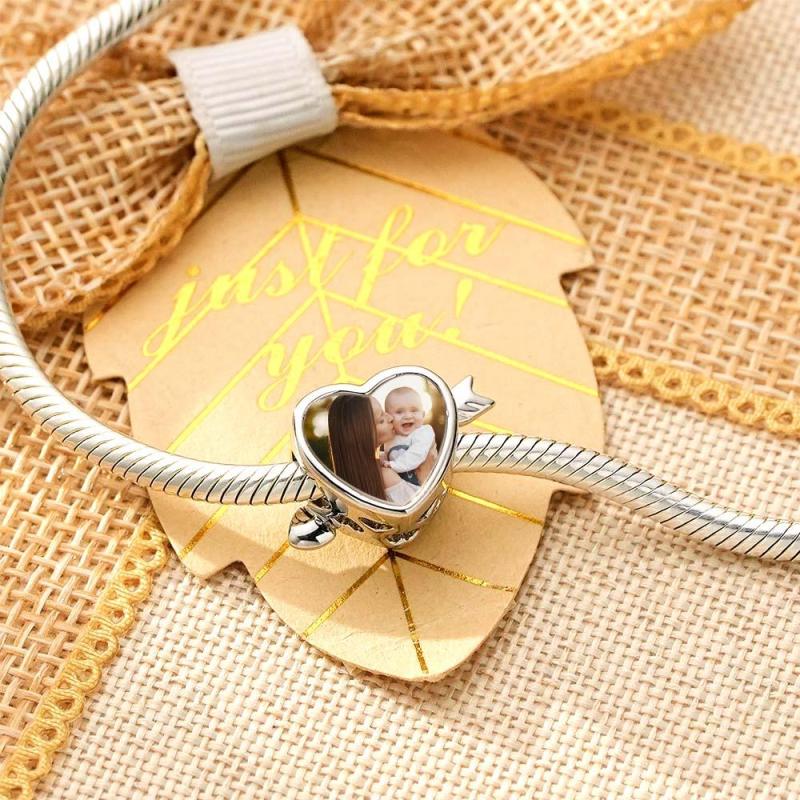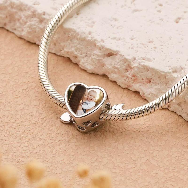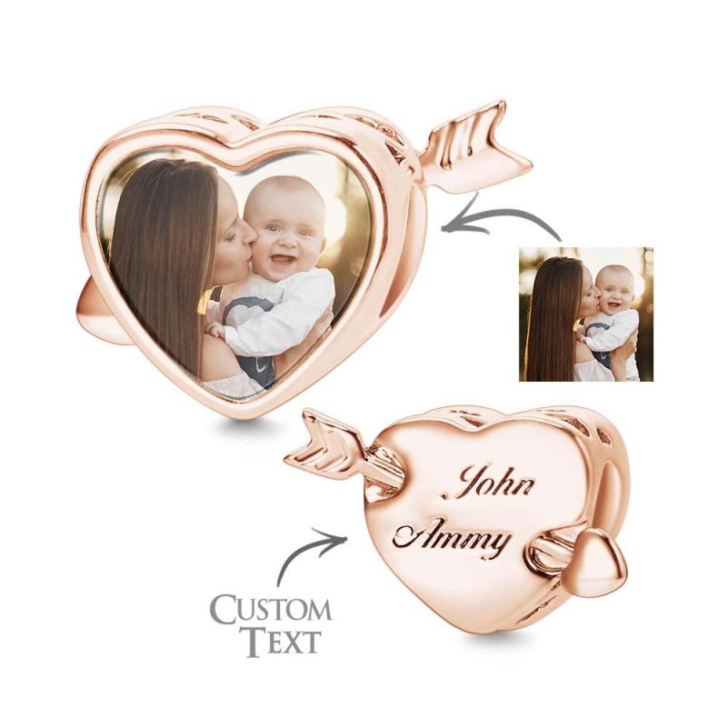 Breloque Photo Personnalisée En Forme De Cœur Avec Gravure De Texte Au Dos