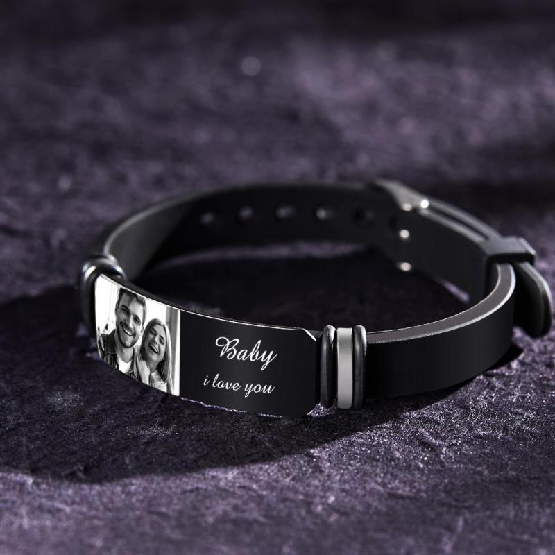 Bracelet Personnalisé Gravé Avec Photo Commémorant Les Cadeaux Pour Hommes Saint-Valentin