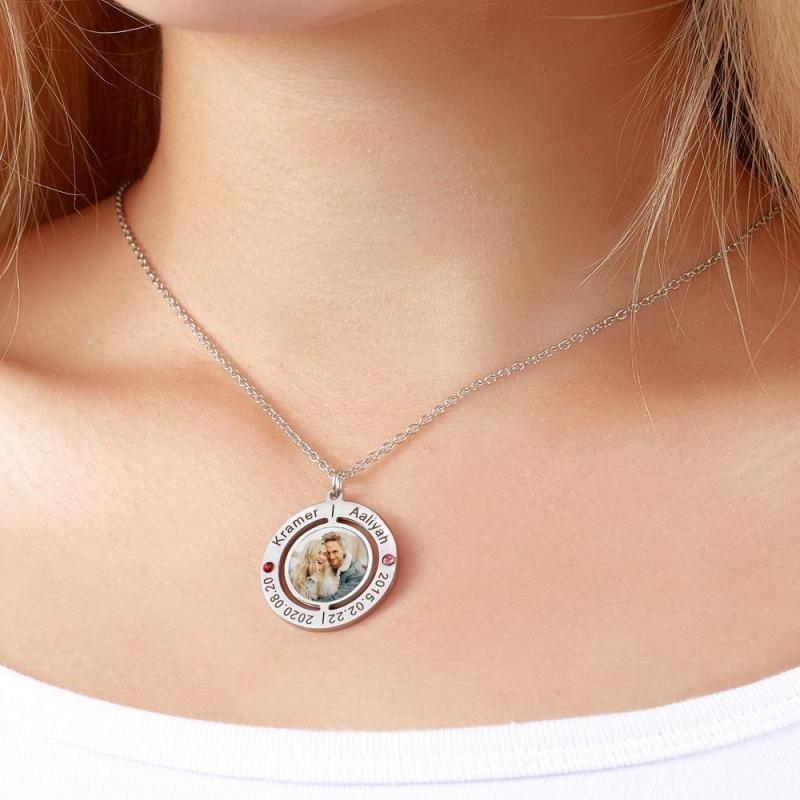 Collier Photo Gravé Personnalisé avec Pierres de Naissance Cadeau Pour Elle