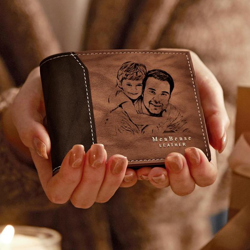 Portefeuille Photo Personnalisé Gravé Cuir Ombre Cadeaux Simples