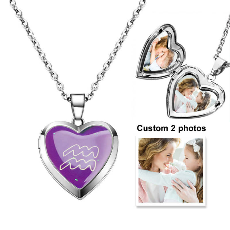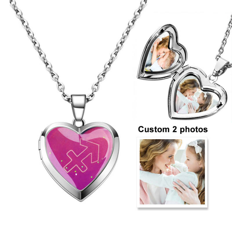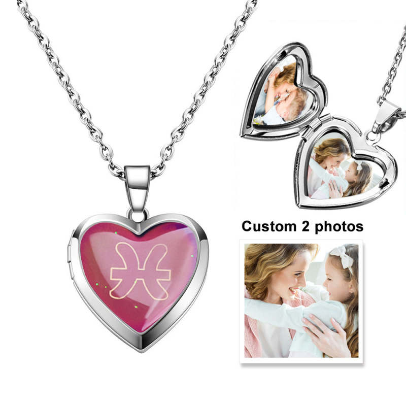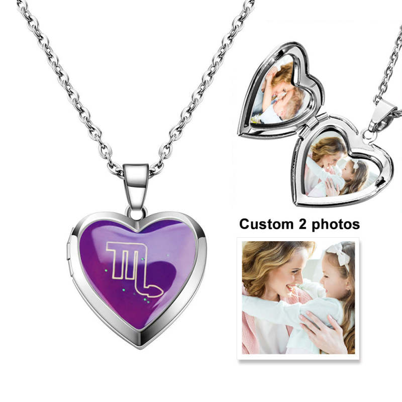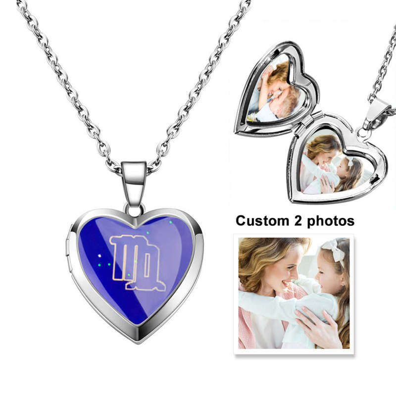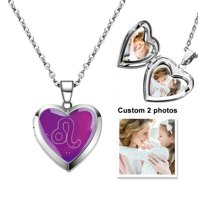 Collier Médaillon Coeur Photo Personnalisé Douze Constellations Température Détection Changement De Couleur Pendentif Collier