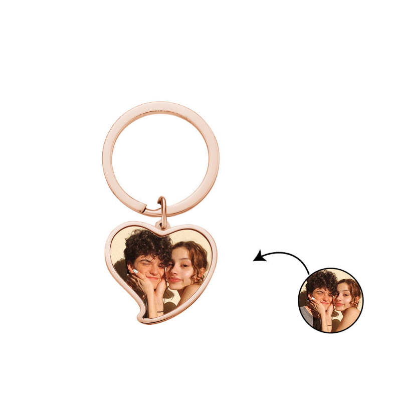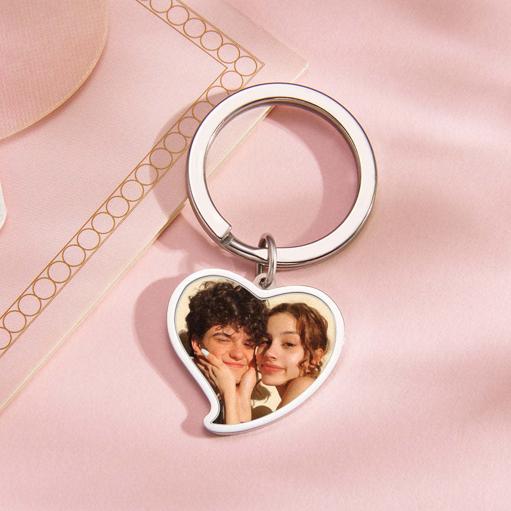 Porte-clés Photo Personnalisé Porte-clés en Acier Inoxydable en Forme de Coeur Cadeau Pour Amoureux