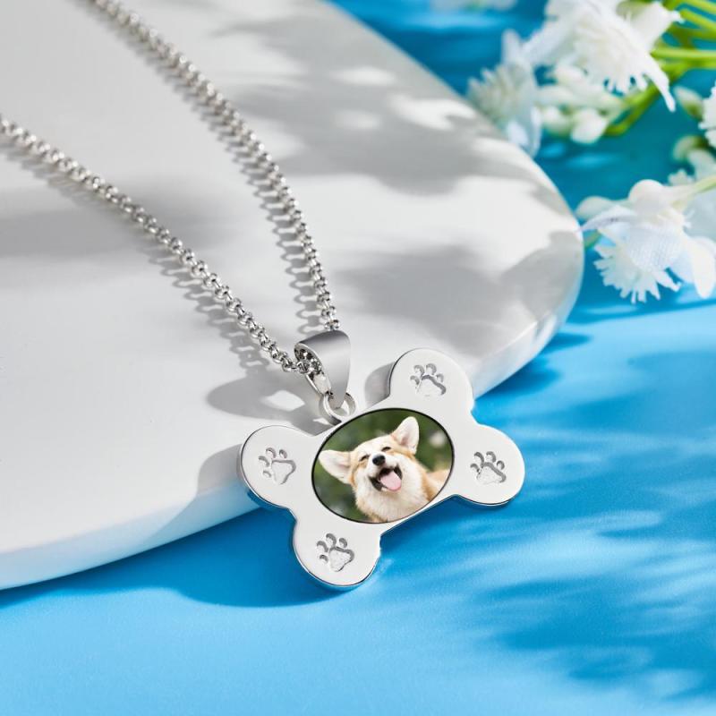 Pendentif Personnalisé Dog Tag Photo Colliers Avec Petites Empreintes