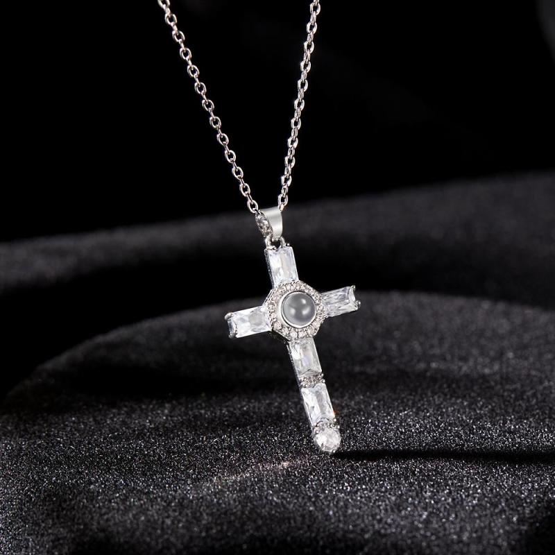 Collier de Projection de Photo Personnalisé Croix Cadeaux Commémoratifs