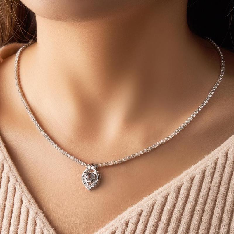 Collier De Projection De Photo Personnalisé, Chaîne De Tennis En Forme De Cœur, Cadeau Créatif