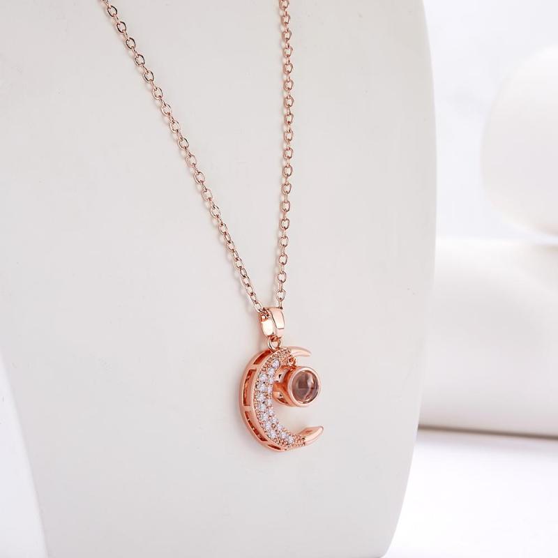 Collier De Projection De Photo Personnalisé Strass Lune Cadeaux Exquis