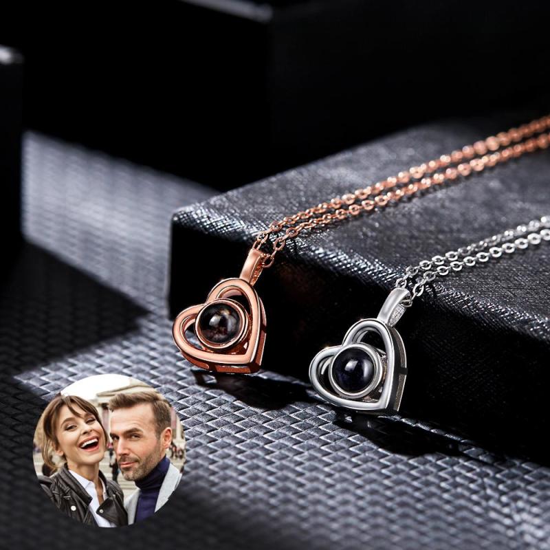 Ensemble De Collier De Projection De Photo Personnalisé Cadeaux à Thème De Couple Creux En Forme De Coeur Deux Pièces
